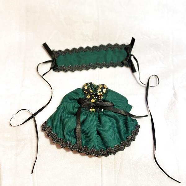 - > ミディブライス相当サイズ『クラシカルロリィタDark greenワンピース&ヘッドドレスセット』